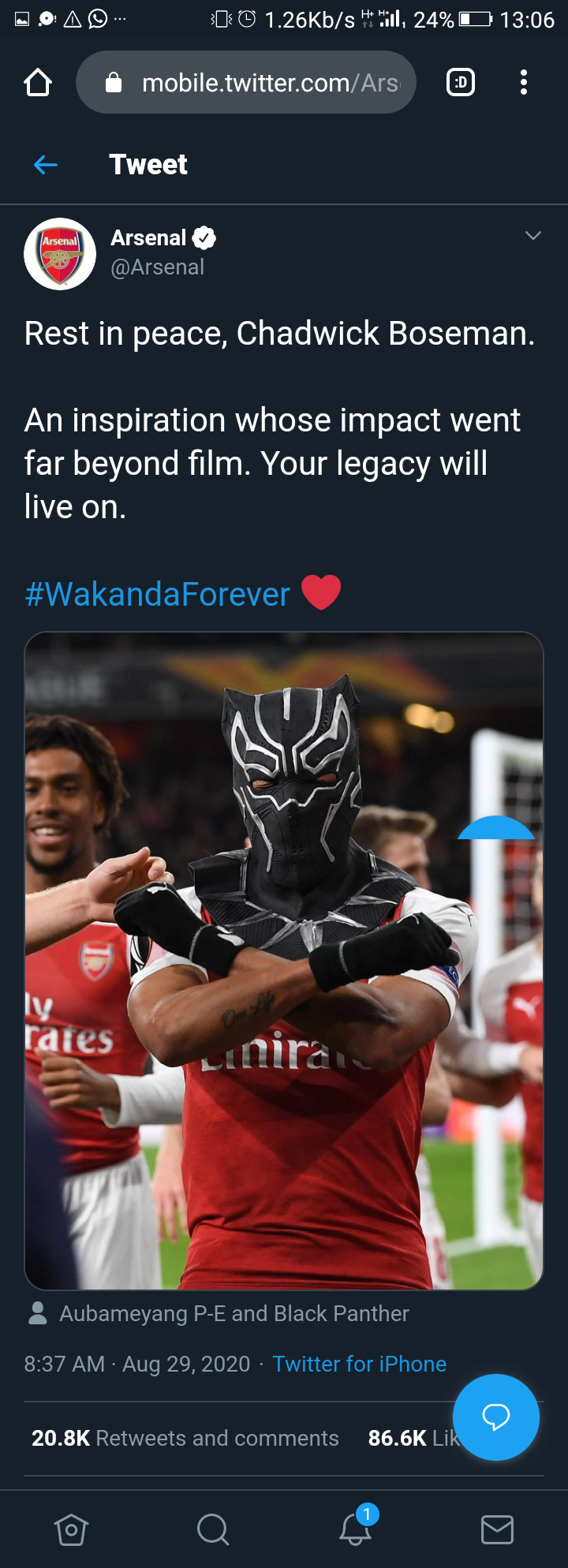 Chadwick Boseman Pierre Emerick Aubameyang Pays Tribute To Black Panther Actor With Wakanda Forever Celebration The Independent The Independent