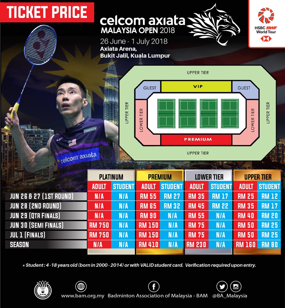 Bam On Twitter Updated Go Get Your 2018 Celcom Axiata Malaysia Open Ticket Now At Https T Co Pzlwukcuvh For Platinum Tickets Enquiries Contact Us At Yapp Sc Bam Org My Or 60109324419 Camo2018 Badmintonmalaysia Kebanggaankita Https T