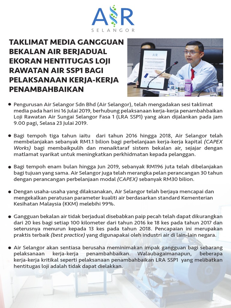 Gangguan Bekalan Air Di Lima Wilayah Pulih Sepenuhnya Air Selangor The Capital Post