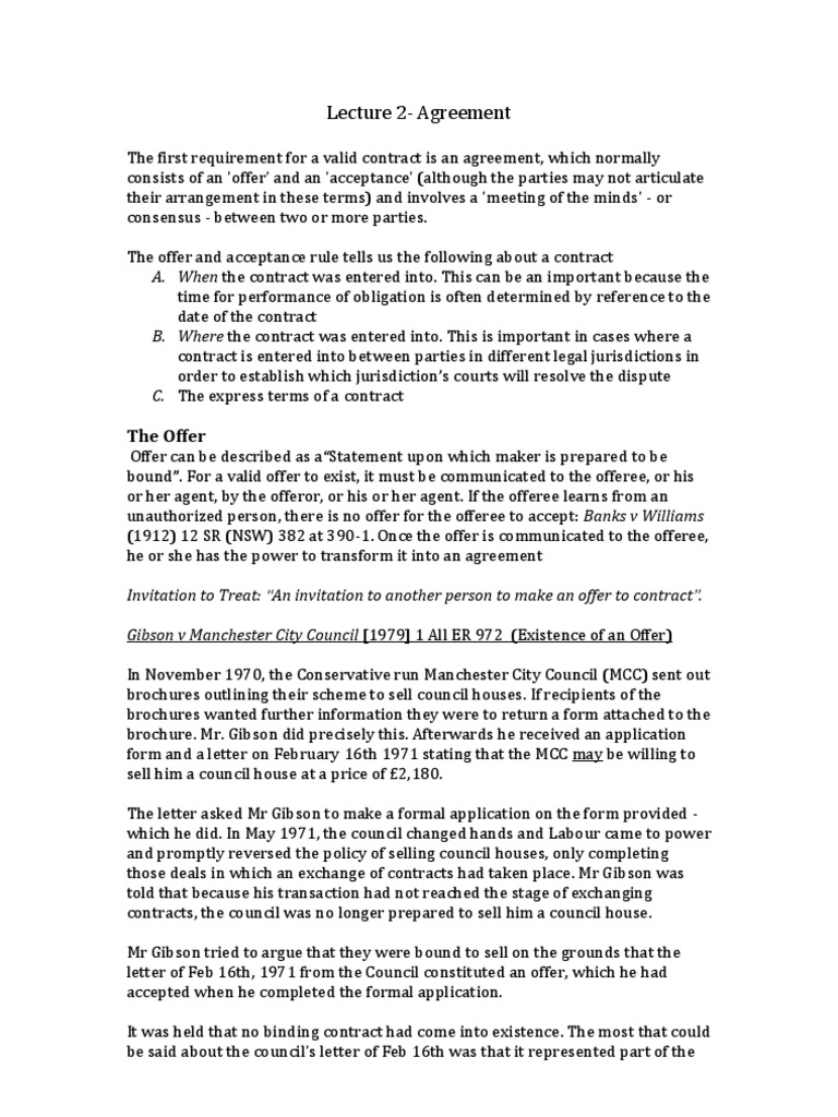 English Law Of Contract Introduction To Course Element Of Agreement Offer Pdf Free Download