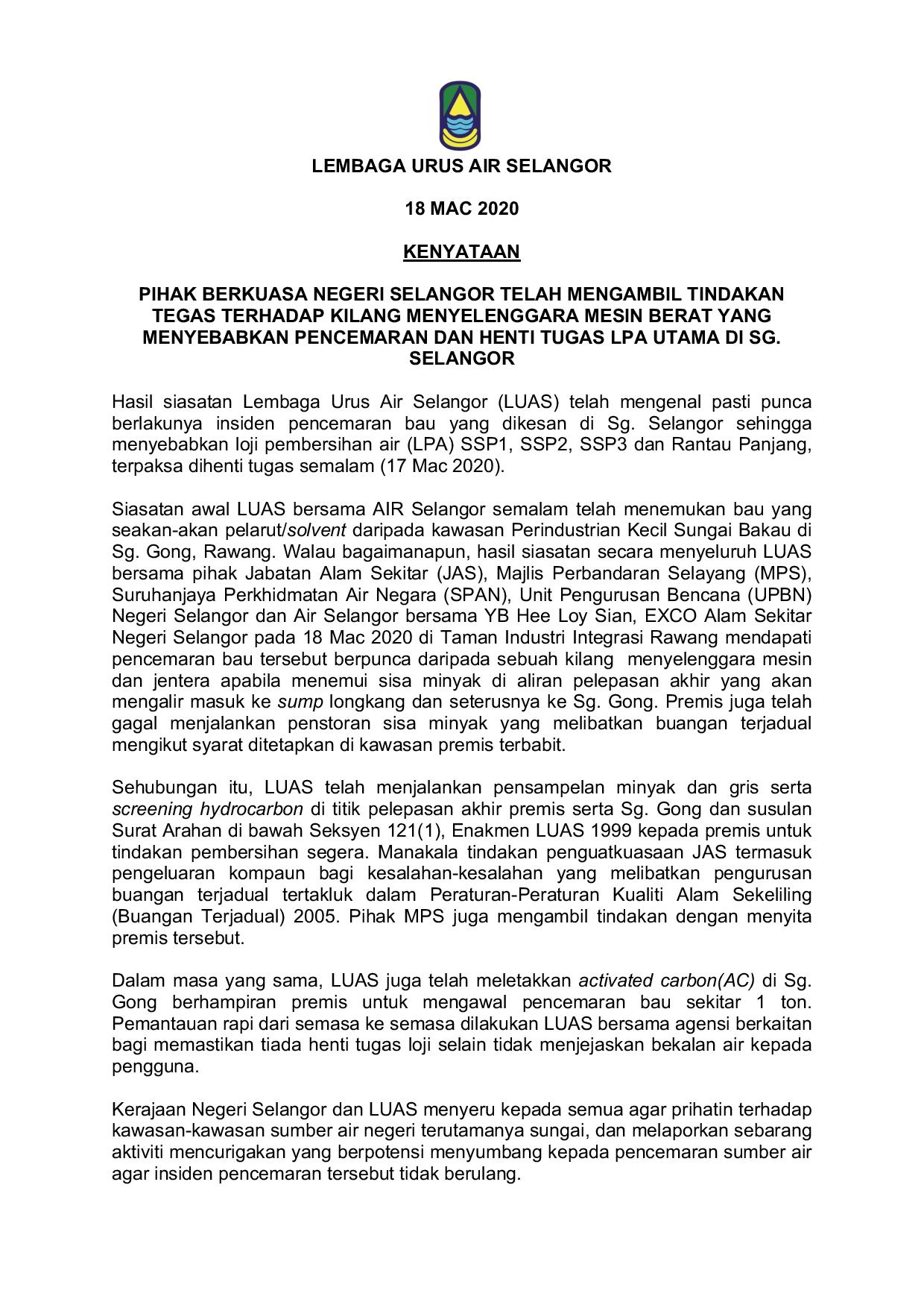 Kilang Pencemaran Air Selangor Archives