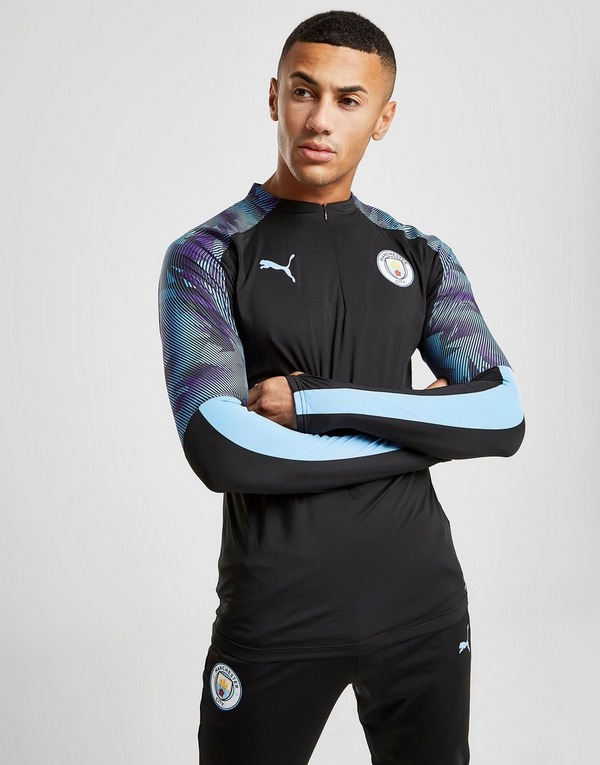 Puma Man City 19 20 1 4 Zip Top Puma White Team Light Blue Training Tops Mens Replica