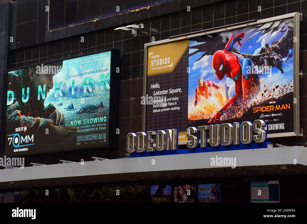 London Uk 26 07 2017 Spiderman Film Banners At The Odeon In Stock Photo Alamy